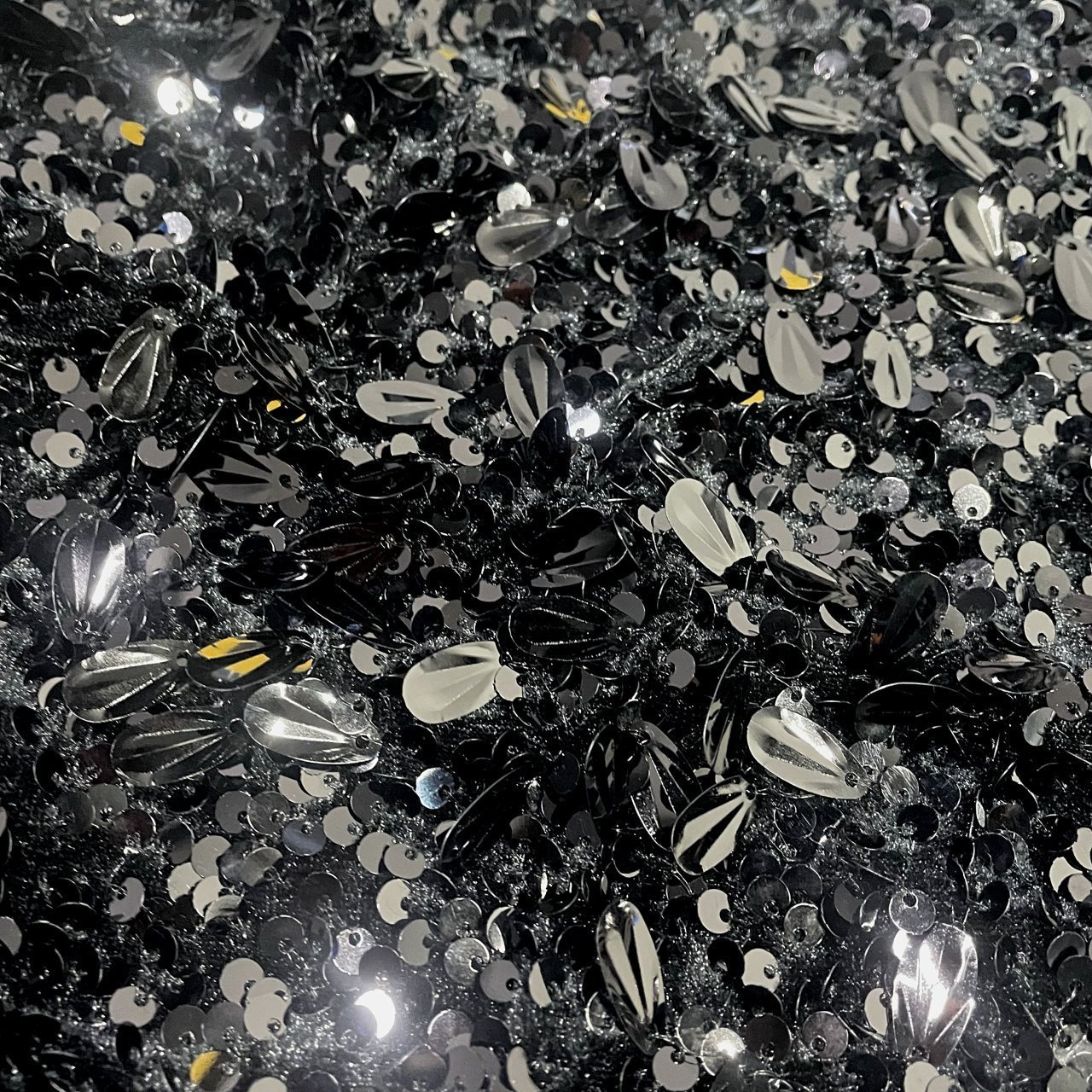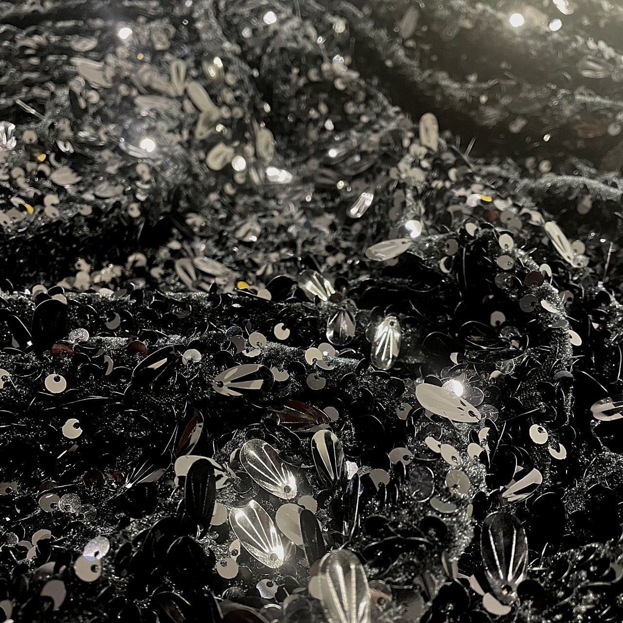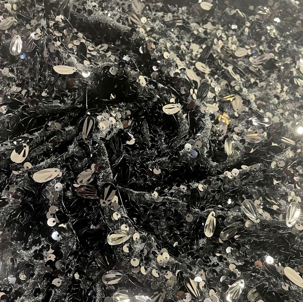 Пайетки на бархате черный\черный с каплей